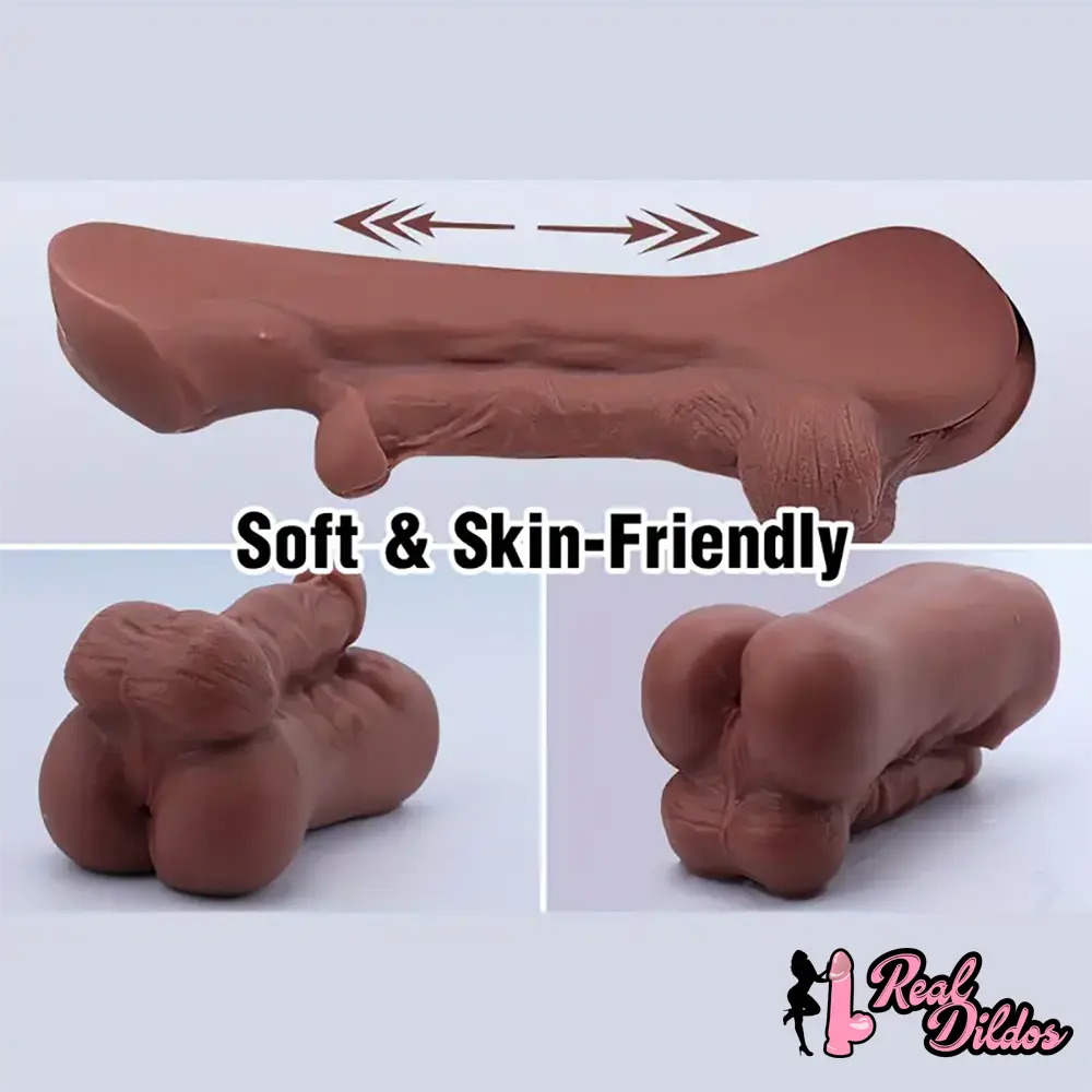 6.3in Premium 3D Real Silicone Flexible Ebony Dildo Anal Pocket Pussy