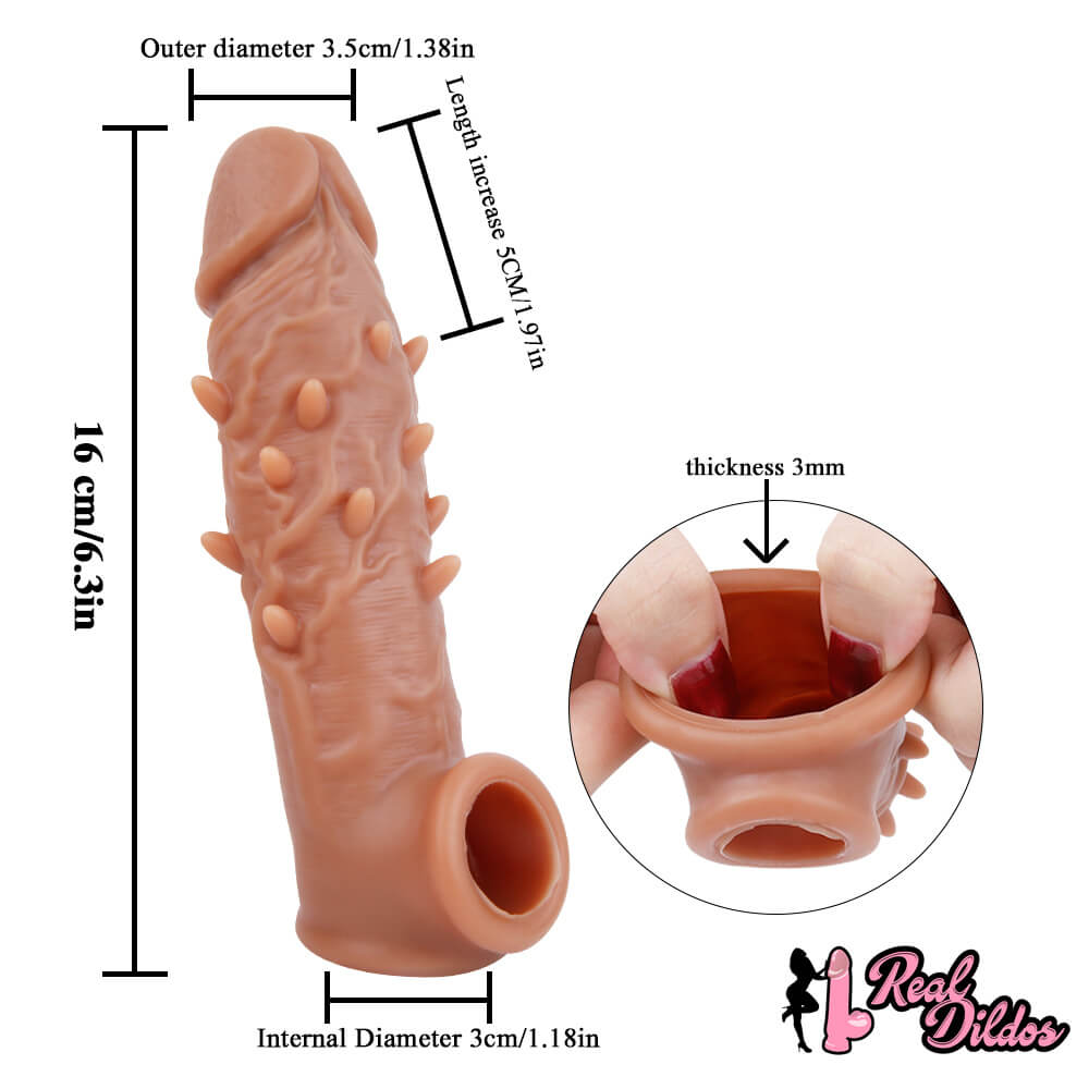 6.3in Silicone Spiked Lengthened Thickened Penis Sleeve Extender Toy