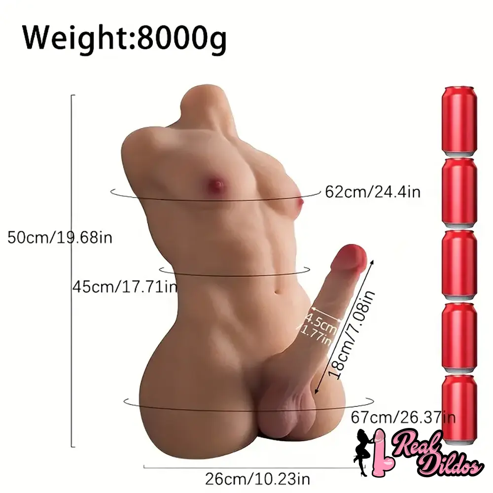 7.08in Premium Silicone Realistic Dildo With Male Sex Doll Torso For G Spot