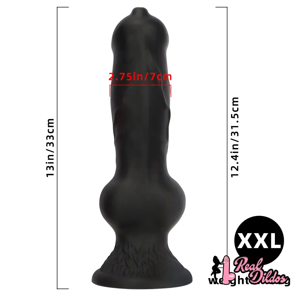 7.28in 7.48in 9.64in 10.62in 13in Big Black Silicone Dog Cock Dildo
