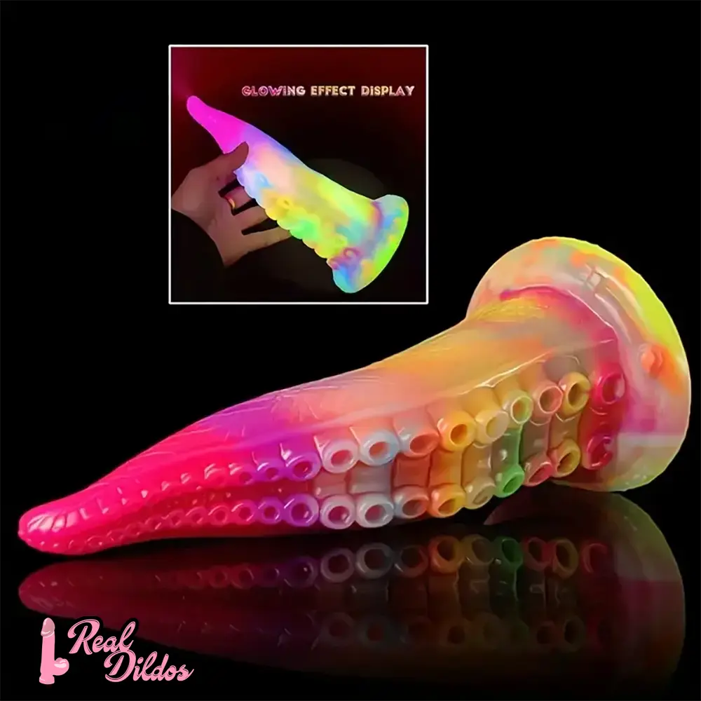 7.28in 9.05in Tentacle Colorful Luminous Liquid Silicone Fantasy Dildo