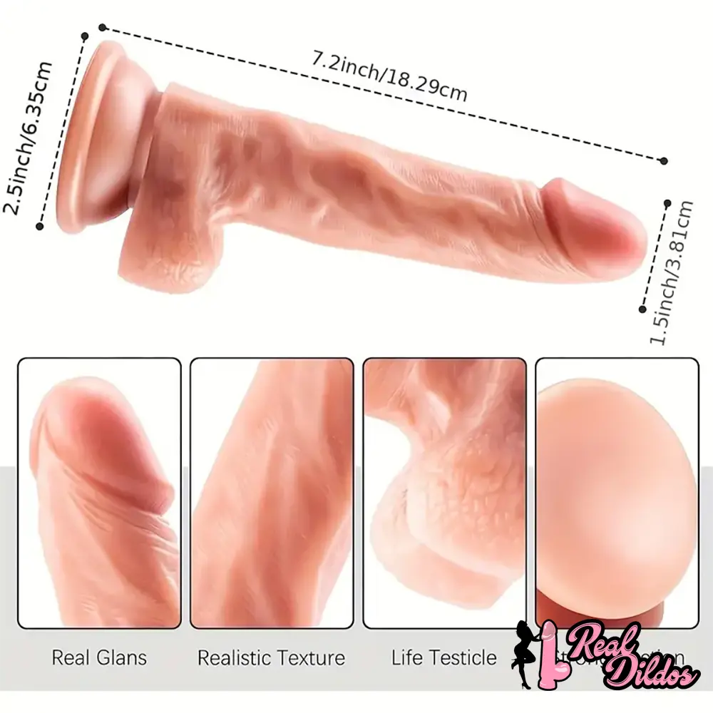 7.2in Premium Realistic Dildo With Lifelike Testicle For G Spot Sex