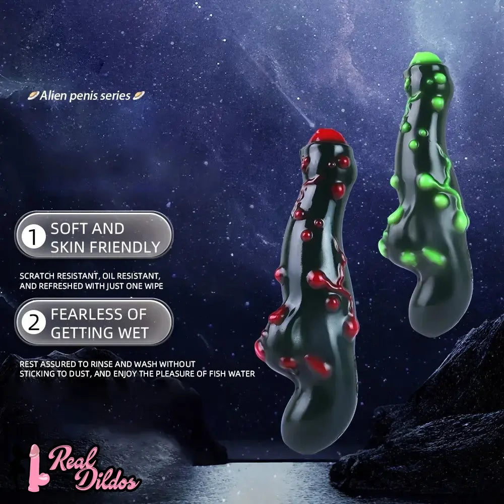 7.38in Alien-Like Colorful Bumps Liquid Silicone Dual-Use Dildo For Men