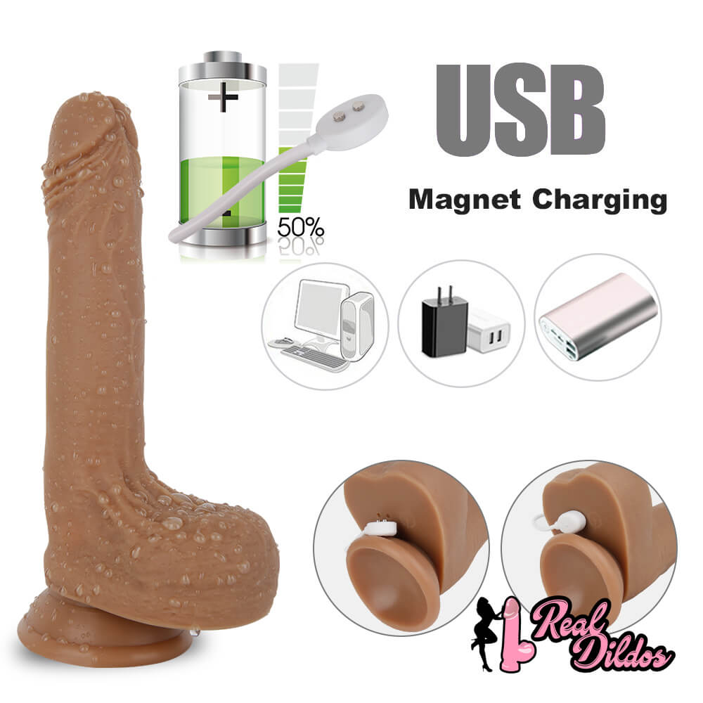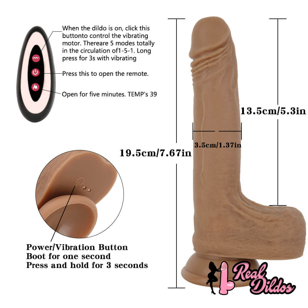 7.67in Women Masturbation Silicone Dildo Vibrating Thrusting Heating Toy