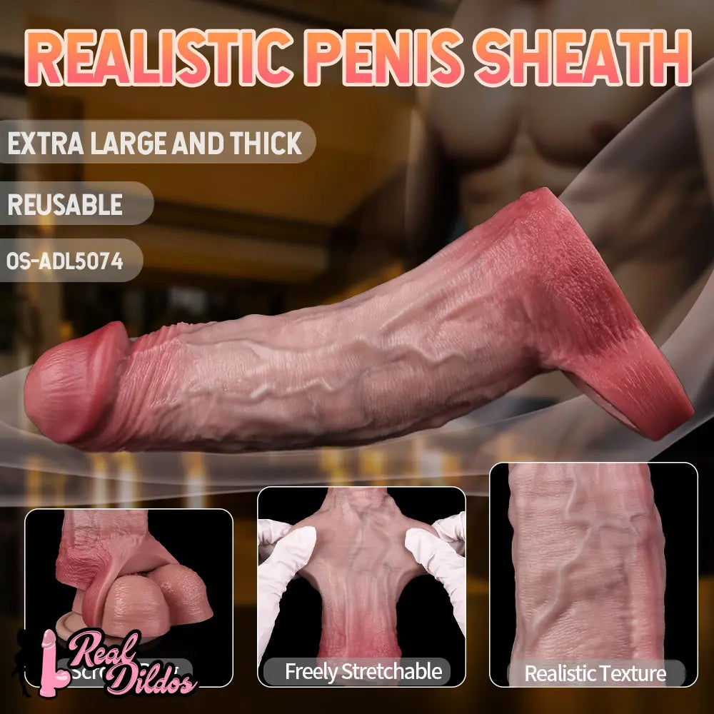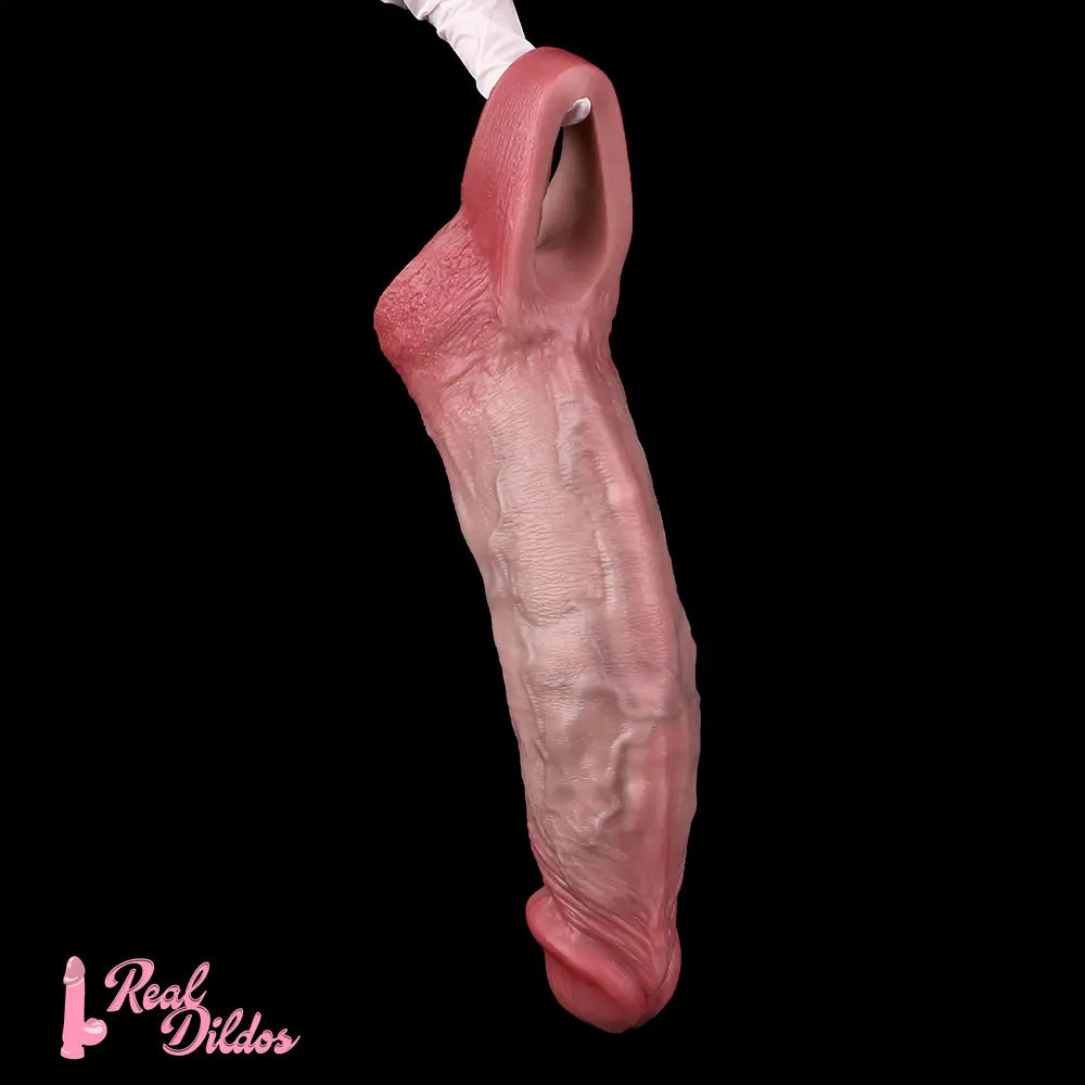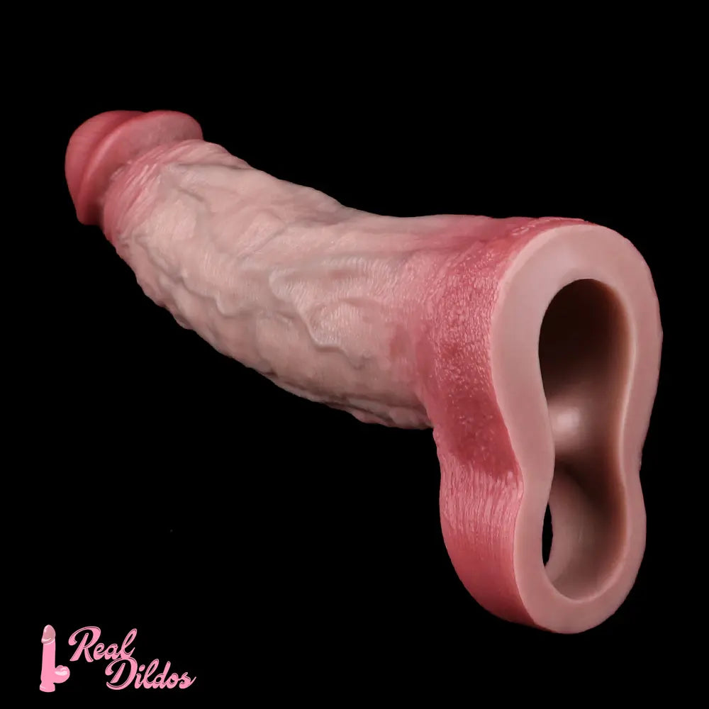 7.72in Real Blue Veins Hollow Dildo Cock Sleeve With Cock Ring For Cock