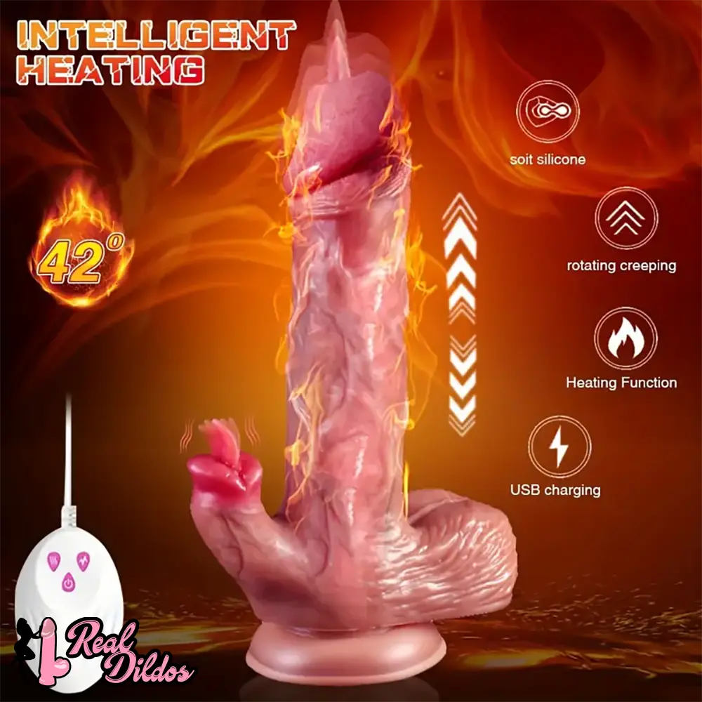 7.87in 4in1 Real Thrusting Intense Vibrating Heating Auto Licking Dildo