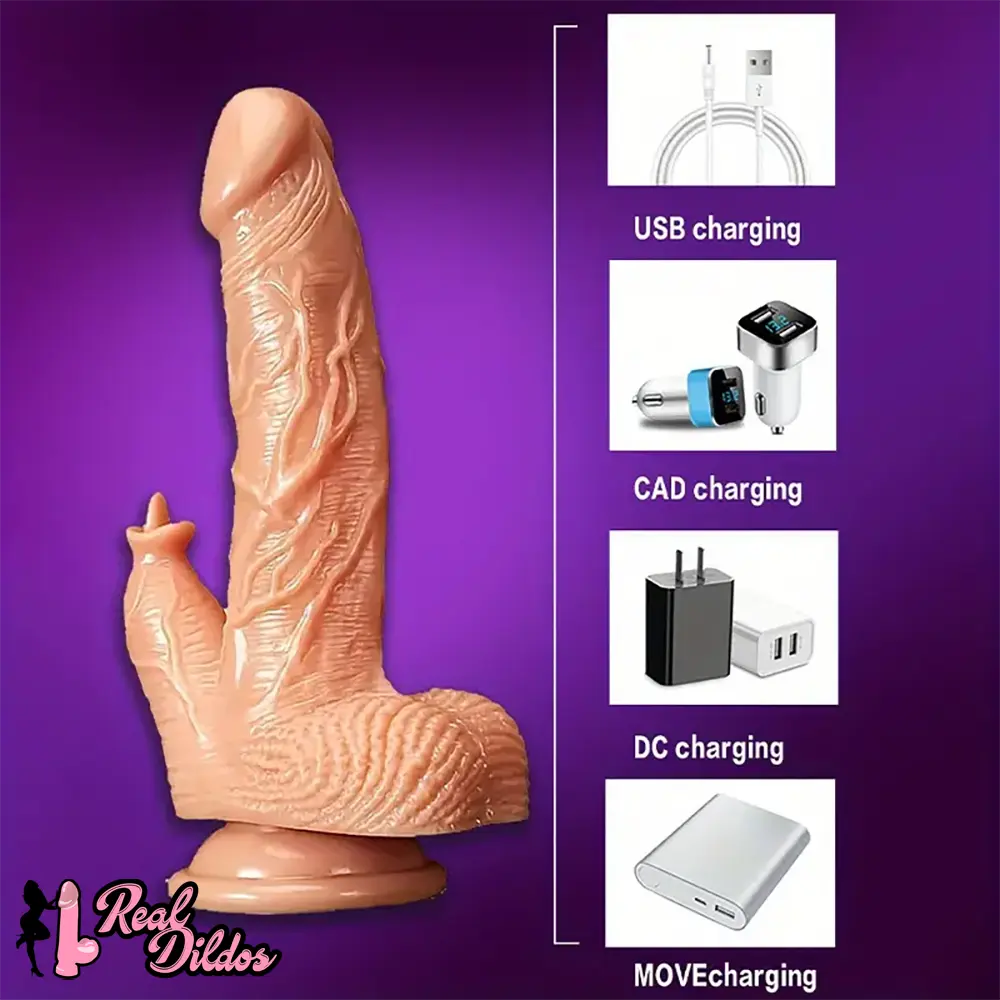 8.11in Big Vibrating Wireless App Controlled Dildo With Licking Tongue