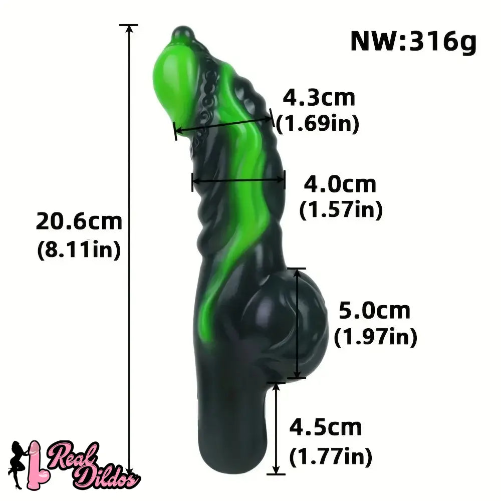 8.11in Weird Penis Three Colors Liquid Silicone Postpartum Handle Dildo