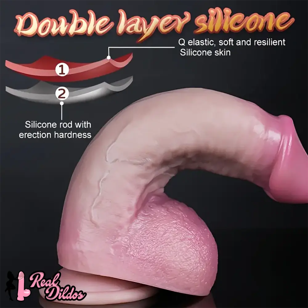 8.66in Curved Upwards Silicone Double Layer Soft Lifelike Big Dildo