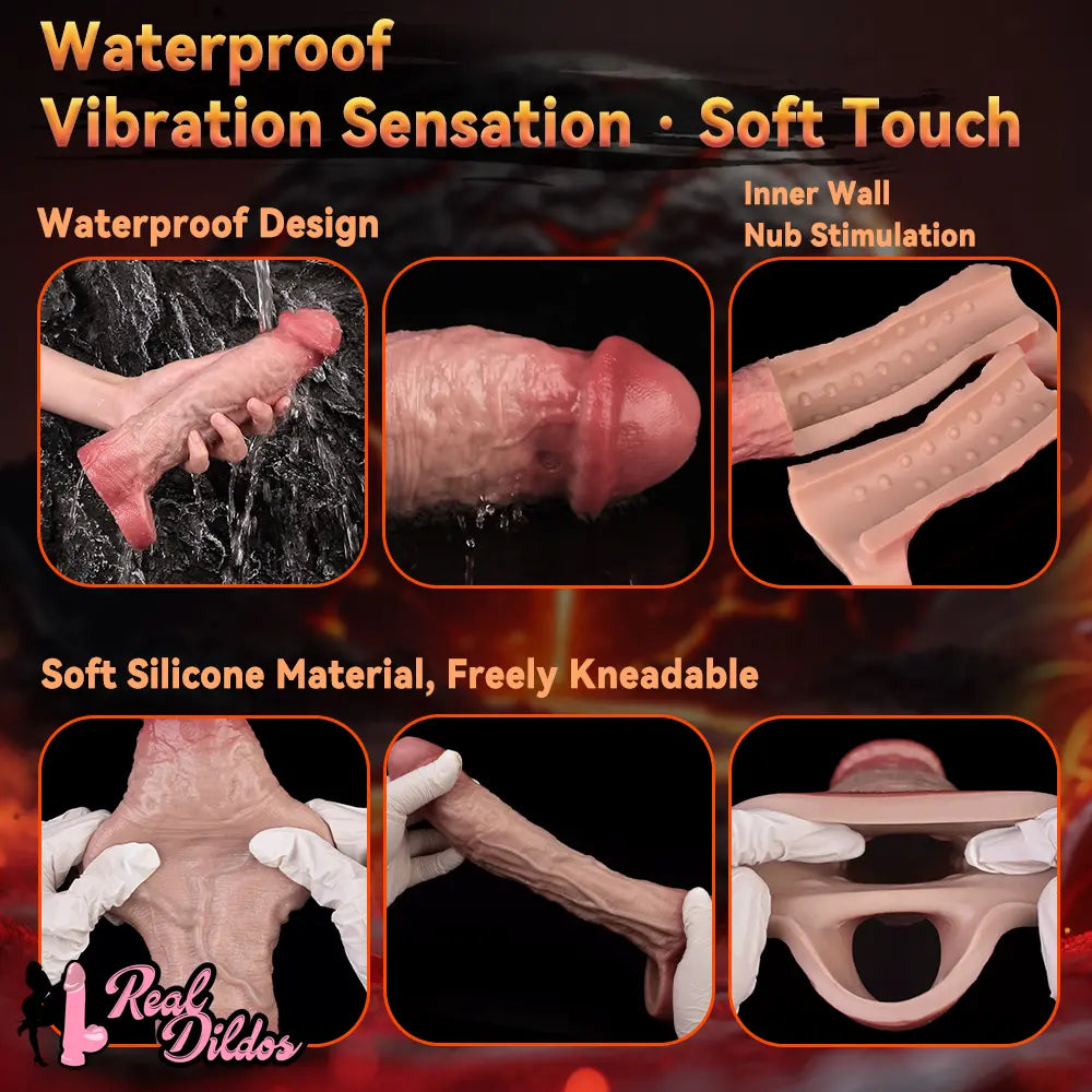 9.06in Vibrating Realistic Remote Silicone Hollow Dildo Sleeve Extender