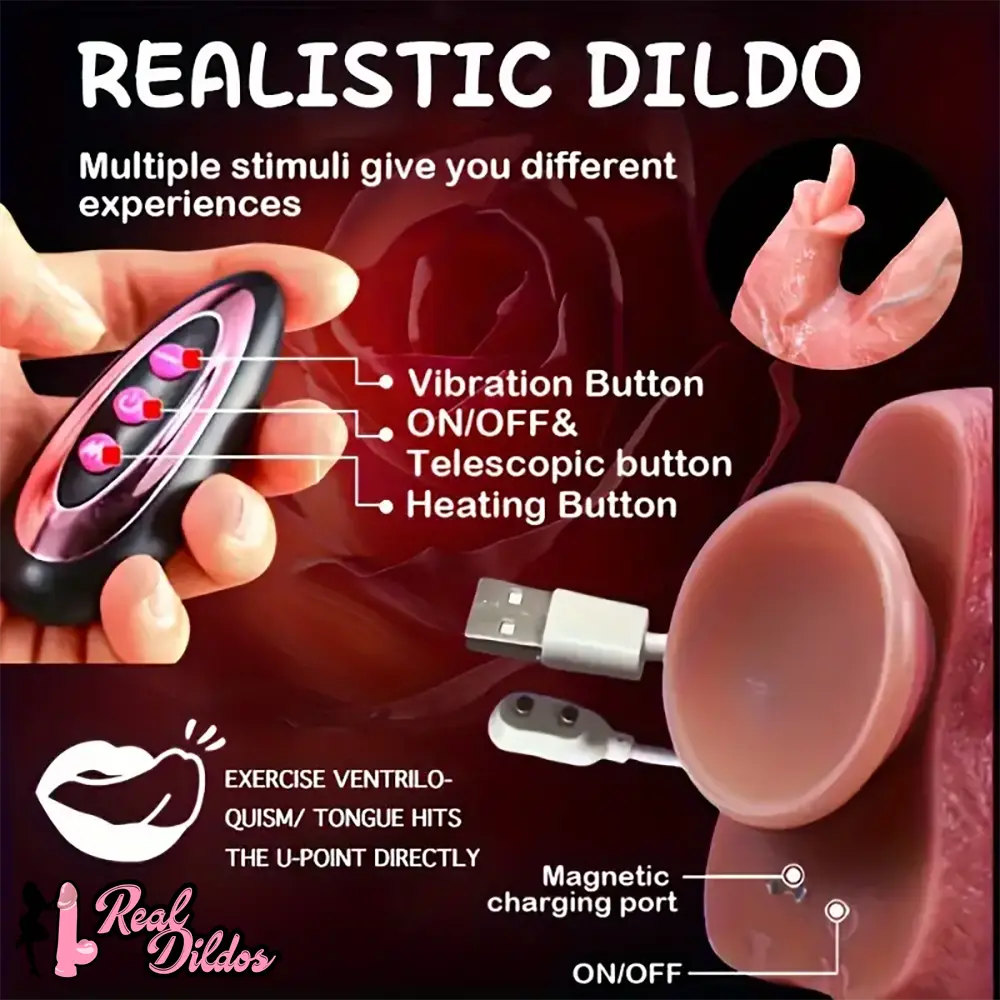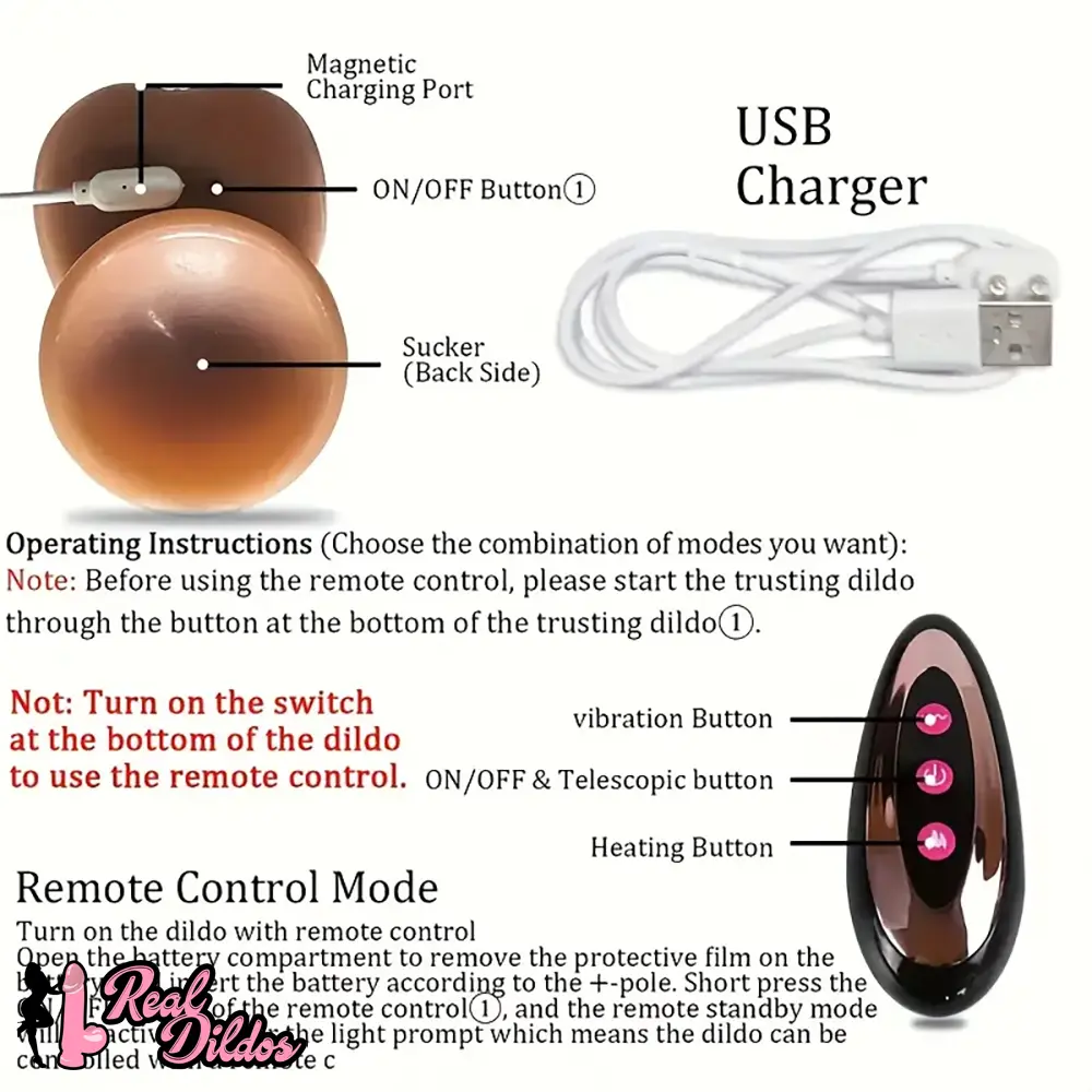 9.25in 5in1 Auto Heating Thrusting Rocking Vibrating Remote Control Dildo