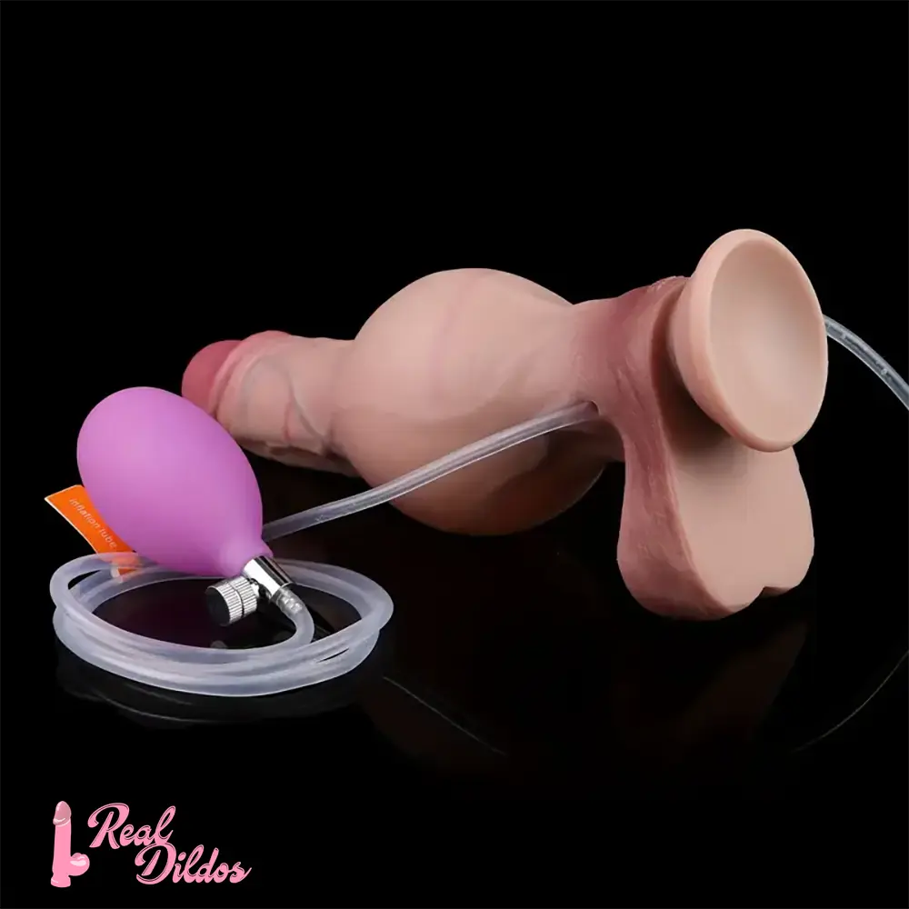 9.44in Realistic Dildo Inflatable Ejaculating Penis Huge Knot Massager