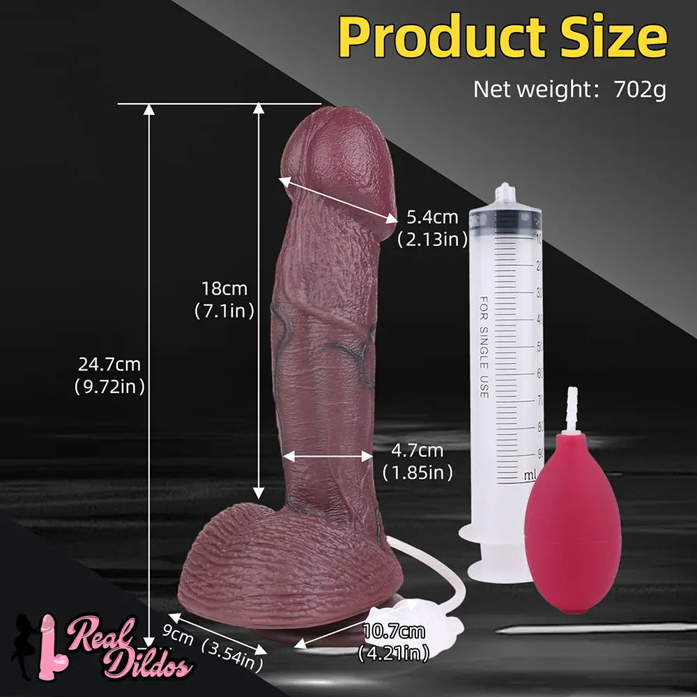 9.72in Manual Male and Female Dual Density Silicone Ejaculating Dildo