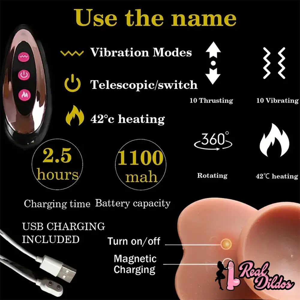 9in Ebony 4in1 Heating Thrusting Vibrating Rotation Remote Control Dildo