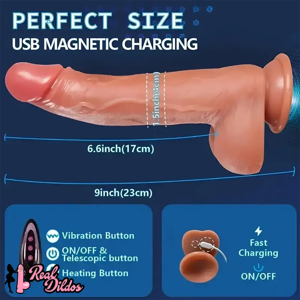 9in Vibrating Heating Thrusting Rotation Realistic Automatic Big Dildo